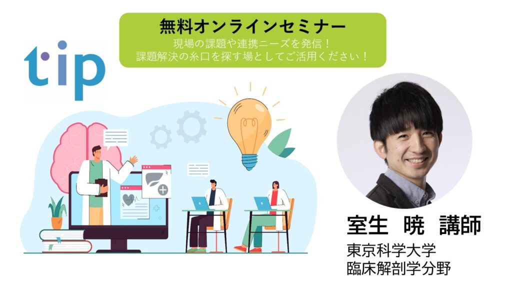 tipより無料オンラインセミナー(TIP BBセミナー)をご案内します。学内およびtip会員(産学官)発の現場の課題や連携ニーズを発信しますので、課題解決の糸口を探す場としてご活用ください!