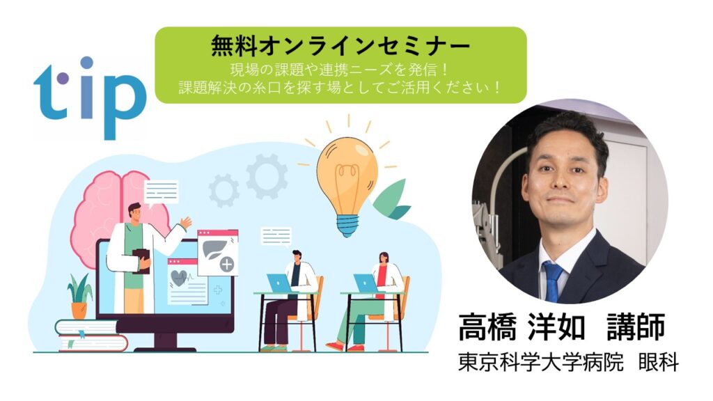 tipより無料オンラインセミナー(TIP BBセミナー)をご案内します。学内およびtip会員(産学官)発の現場の課題や連携ニーズを発信しますので、課題解決の糸口を探す場としてご活用ください!