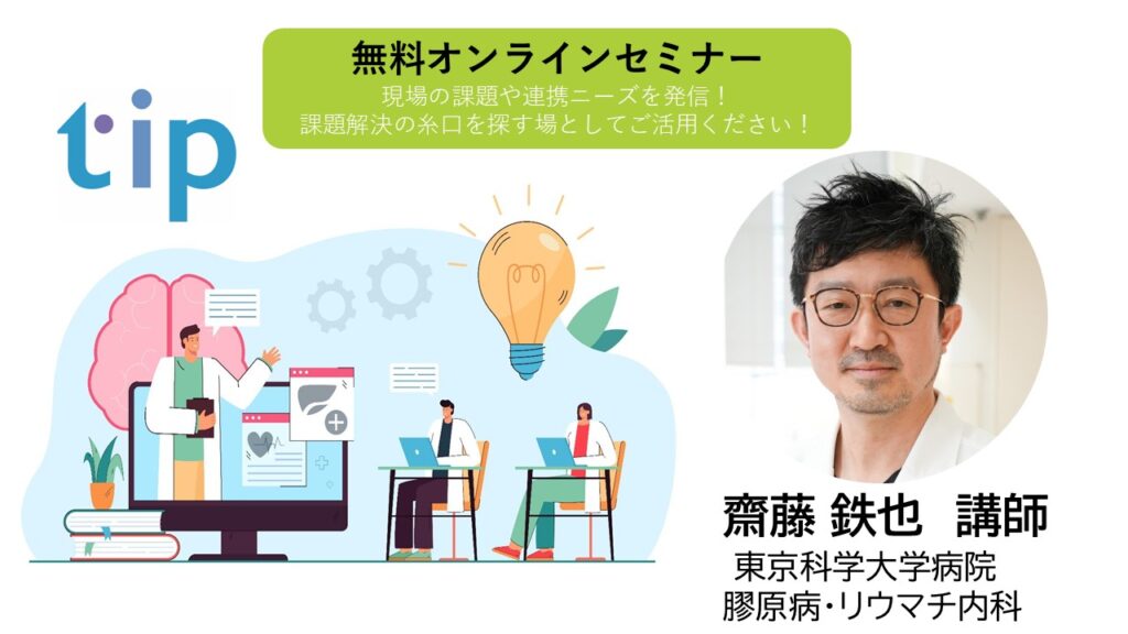 tipより無料オンラインセミナー(TIP BBセミナー)をご案内します。学内およびtip会員(産学官)発の現場の課題や連携ニーズを発信しますので、課題解決の糸口を探す場としてご活用ください!